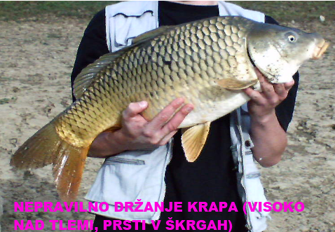 – prijema s suho roko (močno poškodujemo sluz ter ribi povzročimo veliko bolečino – opekline),